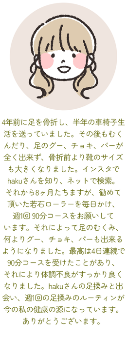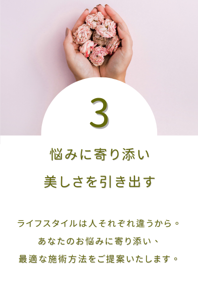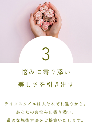 一人ひとりのお客様が、明日も笑顔で輝けるように、心を込めて施術させていただきます。